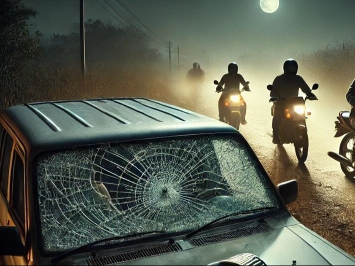 गाड़ी का शीशा तोड़ दिया