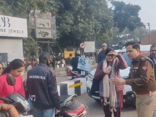 लखनऊ में नए साल के जश्न से पहले पुलिस ने मुख्य चौराहों पर चेकिंग अभियान चलाया। हजरतगंज चौराहे पर डीसीपी ट्रैफिक ने खुद गाड़ियों की चेकिंग की। वाहन चालकों के डीएल और आरसी की जांच हुई। इस दौरान बिना हेलमेट और डीएल वाहन चला रही महिलाएं बचने के लिए बहाने बनाते नजर आईं। कार्रवाई के दौरान डॉग स्क्वॉड टीम तैनात रही।