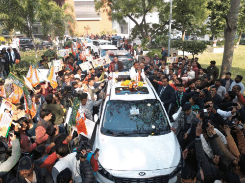 पंकज चौधरी के स्वागत में उमड़ा कार्यकर्ताओं का हुजूम
