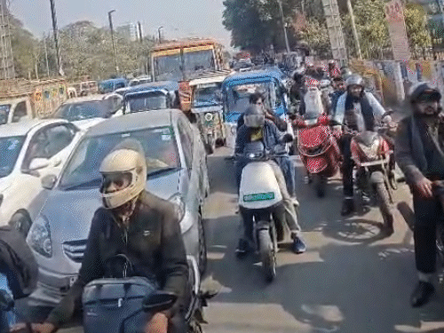 डॉ. जय शंकर यादव ने बताया कि बच्चे को स्कूल से लेकर आ रहे थे। जाम में फंस गए।