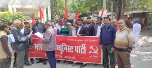 अडानी के लिए सरकार एयरपोर्ट बनाकर उनको देने के लिए तैयार रहती है।उक्त बात भारतीय कम्युनिस्ट पार्टी द्वारा आयोजित आम हड़ताल के अवसर पर प्रदर्शनकारियों को संबोधित करते हुए भारतीय कम्युनिस्ट पार्टी के राज्य परिषद सदस्य रणधीरसिंह”सुमन” ने कहा कि प्रधानमंत्री देश बेच रहे हैं इसलिए वह देश से पलायन कर रहे हैं।